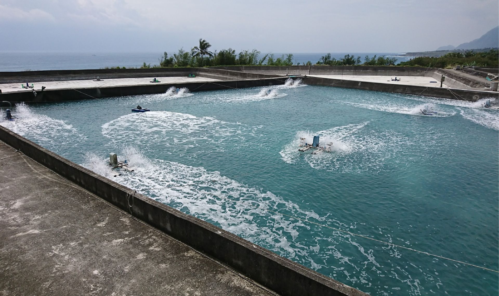 天然海水原本乾淨無色,因為光線散射的關係帶些微藍色。在養殖過程中,隨著飼料的投餵,海水就會帶上飼料的顏色;同時,天然藻類飄落其中,也給海水帶來藻水的色澤。不同種類的藻類會產生不同的顏色,這其中有些是好藻,有些則是壞藻。因此觀察水色來調整養殖策略是養殖人相當重要的操作指標哦!